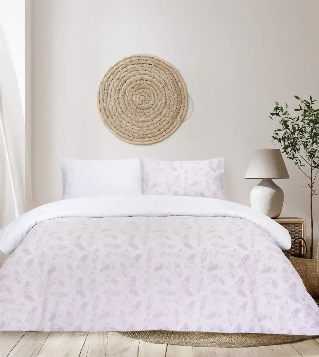 Σετ σεντόνια υπέρδιπλα από 100% βαμβάκι 144 κλωστών, σε λιλά απόχρωση με φλοράλ σχέδιο, που χαρίζει όμορφη και προσεγμένη εικόνα στο υπνοδωμάτιο. Συνδυάστε με το υπόλοιπο σετ για ένα ολοκληρωμένο αποτέλεσμα.