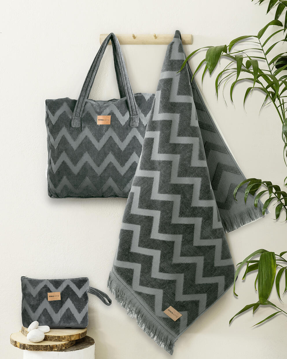 Nima Home Πετσέτα Θαλάσσης 90x160cm – Vida Dark Gray Jacquard